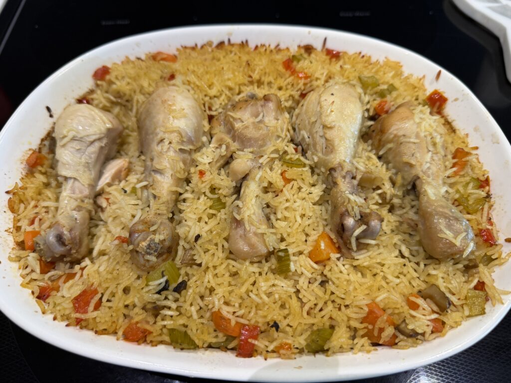 A cozy, colourful, oven‑baked chicken and rice dish that tastes like it took all day — but comes together with simple ingredients and zero fuss. Juicy chicken, tender vegetables, fluffy basmati, and a seasoned broth that ties everything together.