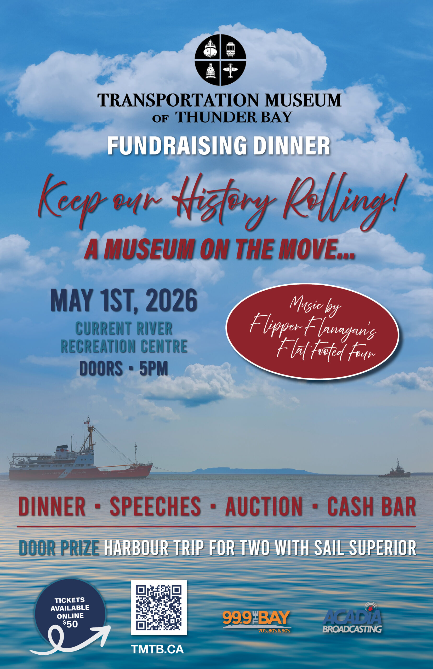 Exciting Auctions: Bid on unique items, art, and outdoor gear inspired by Lake Superior’s beauty in our Penny, Silent, and Live Auctions. Door Prizes: Win fantastic gift cards, “bonus bucks,” and unique experiences donated by our generous community partners that also includes a tour around the Thunder Bay Harbour, with Sail Superior. Community Connection: Mingle with fellow history enthusiasts, local artists, and supporters who share your passion for preserving Thunder Bay’s Transportation legacy, including rail, air, grain, and lighthouses.