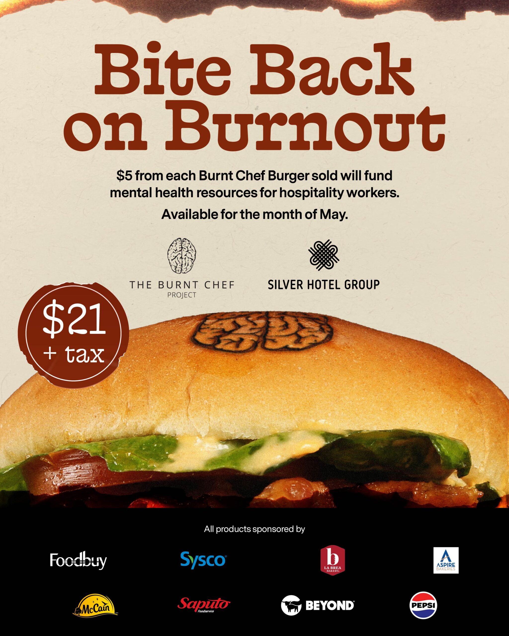 For every Burnt Chef Burger sold, $5 will be donated directly to The Burnt Chef Project, helping fund vital mental health tools and resources for hospitality professionals.
