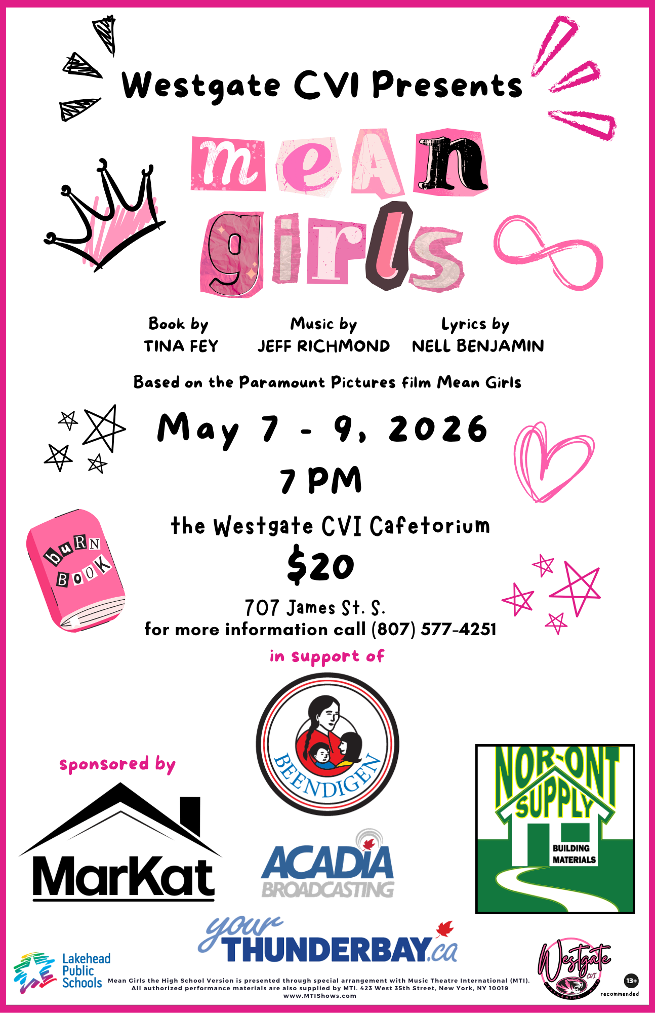 Westgate CVI High School is proud to present Mean Girls: The Musical in our Cafetorium from May 7th – 9th! Join us for a high-energy, hilarious production brought to life by our talented students. This show is recommended for ages 13+.