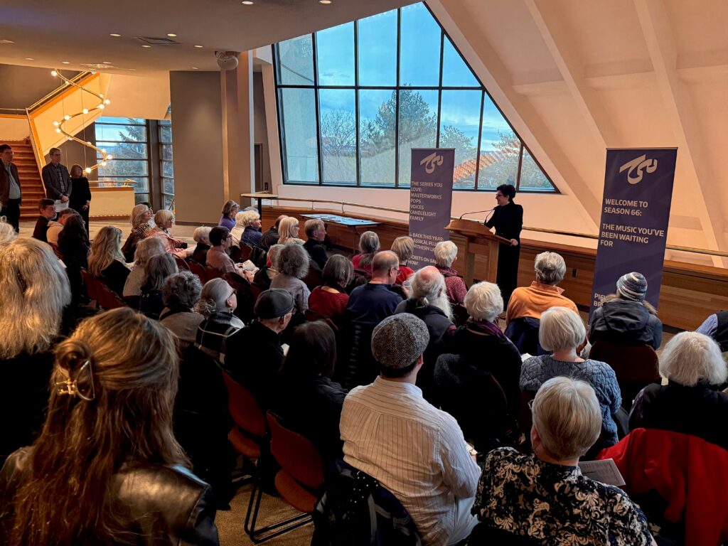 The mezzanine lobby of the Thunder Bay Community Auditorium was already buzzing with anticipation as patrons gathered ahead of the evening’s Masterworks concert, drinks in hand and conversations building. Before the music began, and just ahead of the pre-show conductor talk, the Thunder Bay Symphony Orchestra stepped forward to unveil its 66th season.