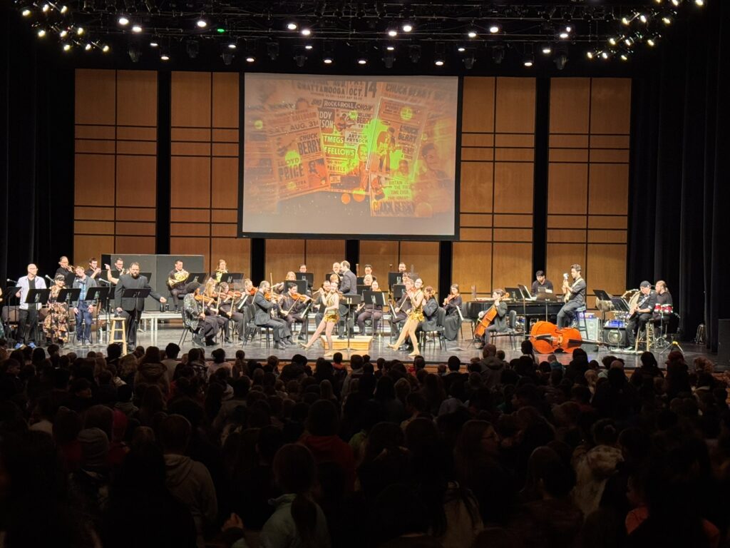 As the orchestra launches into Johnny B. Goode, the energy lifts instantly. Students begin moving in their seats, hands jiving to the beat, shoulders bouncing, dancing in the narrow spaces between rows. It’s spontaneous and joyful, a reminder that music isn’t just something to be played, it’s something that moves you.