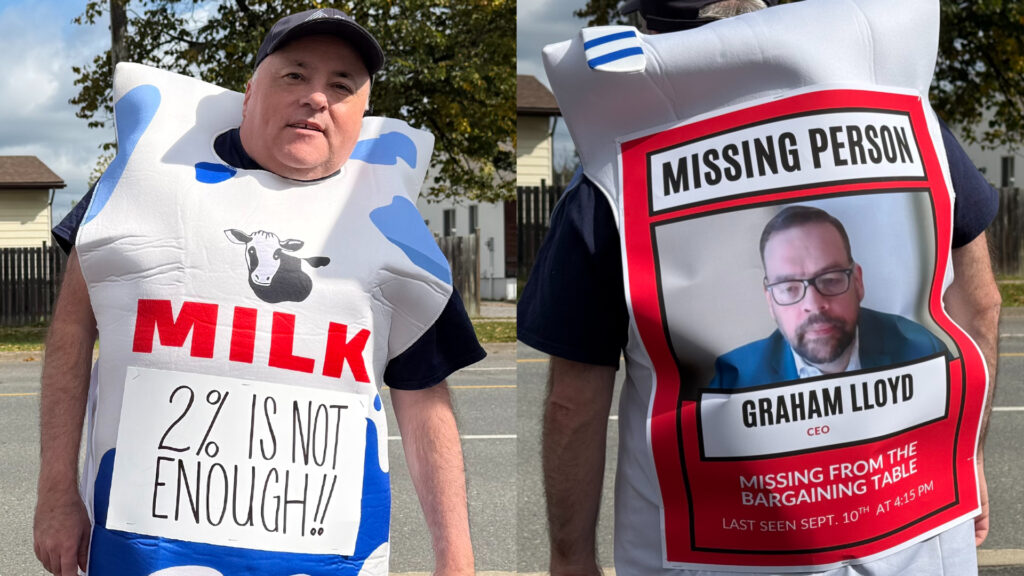 President Owen Smith of OPSEU Local 731 could be seen in a tongue-in-cheek costume meant to call out CEO Graham Lloyd of the College Employer Council. OPSEU’s negotiations with the College Employer Council have been at a standstill for more than a week.