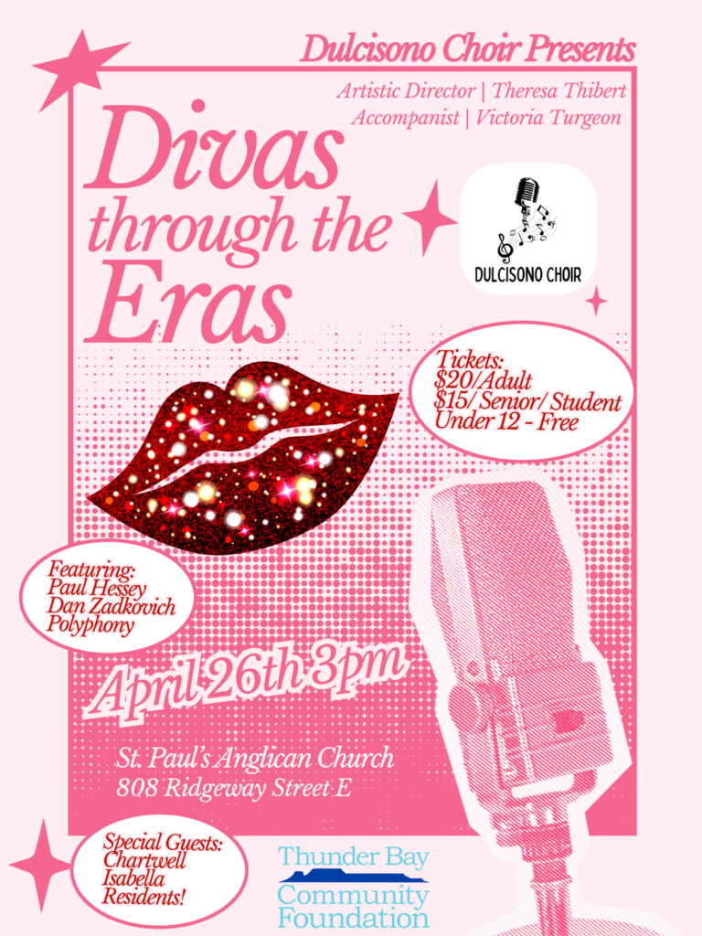 Travel through nearly a century of iconic music as Dulcisono Choir presents Divas Through the Eras, celebrating legendary female voices from the 1930s to today. Featuring special guests Paul Hessey, Dan Zadkovich, Polyphony, and Chartwell Isabella Residents, this afternoon concert promises powerful vocals and timeless songs.
