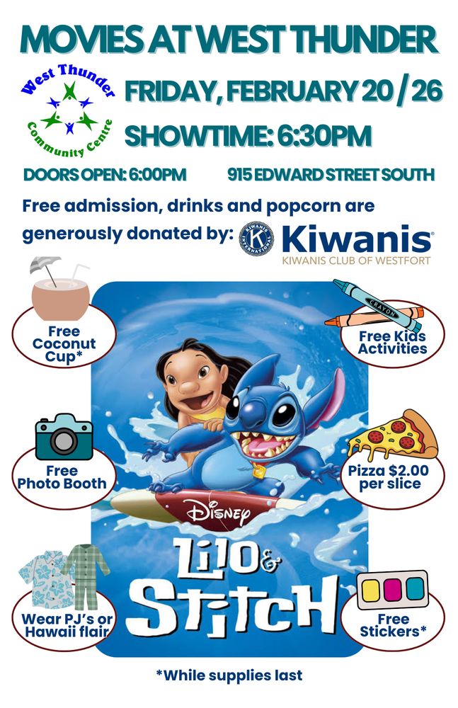Admission: Free (including popcorn and drinks, thanks to Kiwanis Club of Westfort)