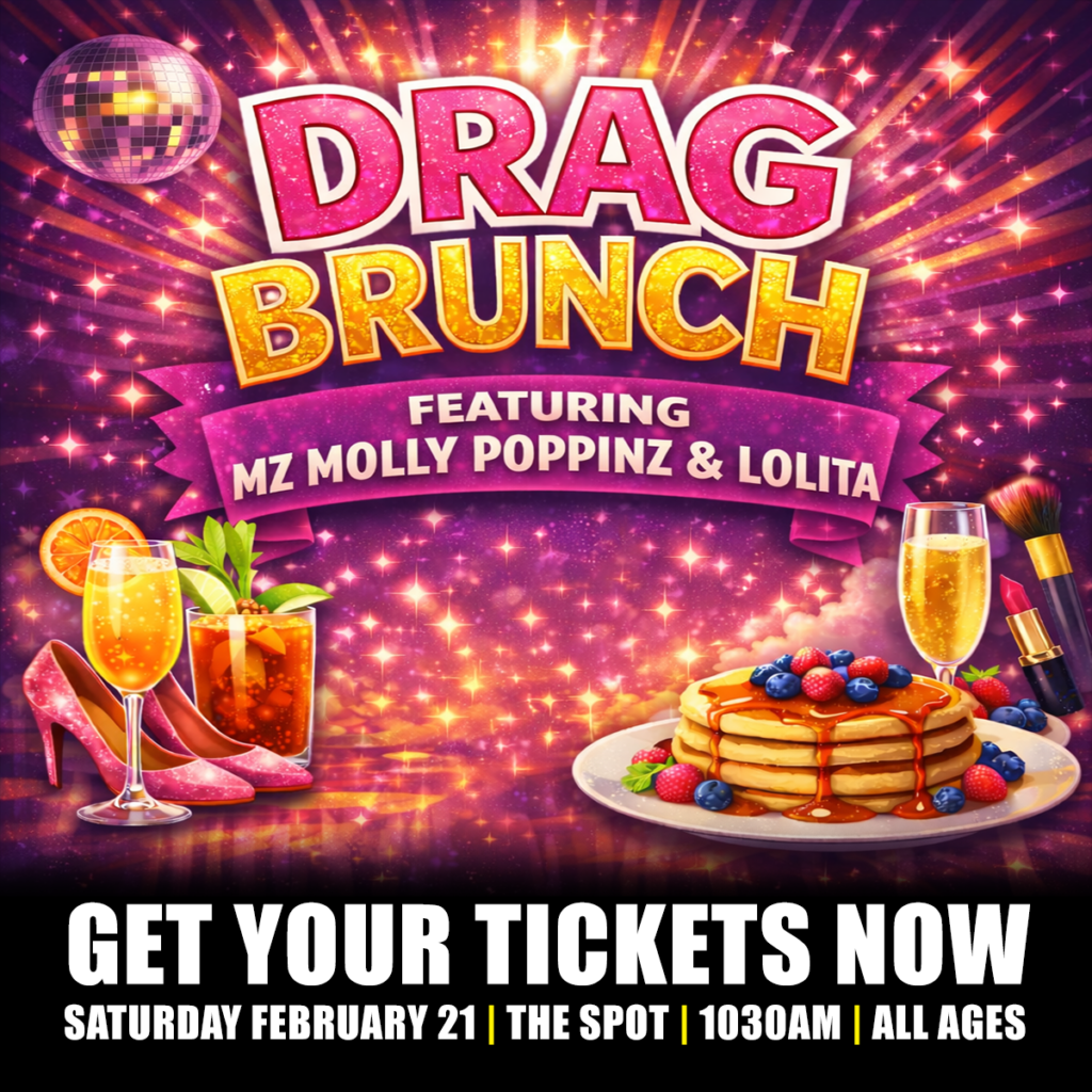 Wiggins Productions and The Neighbours Cooking present a brand‑new Drag Brunch at The Spot. The debut seating features beloved local performers Mz Molly Poppinz and Lolita, plus a delicious brunch plate included with admission.